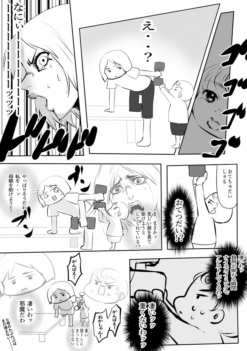 お母さんの筋トレをお手伝いしちゃうお子さんが可愛いジョジョ風漫画 贅肉は砕けない Togetter